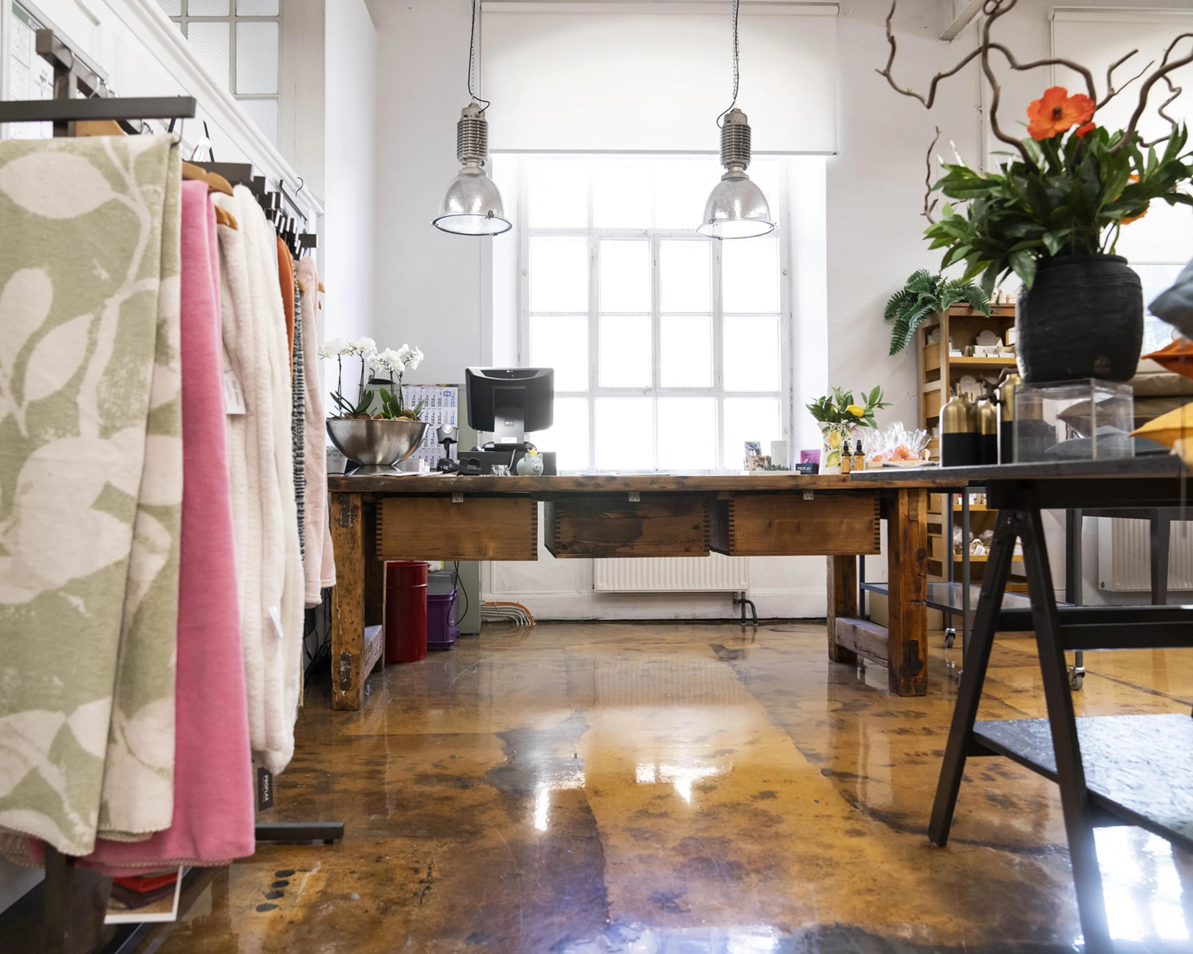 Lassen Sie sich von der speziellen Atmosphäre des Neckarspinnerei Quartiers verzaubern. Die Mischung aus historischem Design und modernen Textilien macht Lust aufs Einkaufen.